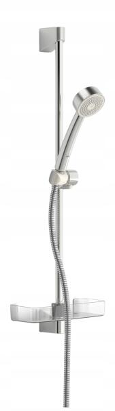 - zuhanyzó tömlő 1500 mm hosszú- zuhanyrúd- zuhanytartó- stabil és könnyen tisztítható szappantartó polc- fali tartó - kézizuhany vízkőmentesítő szitával- szín: króm